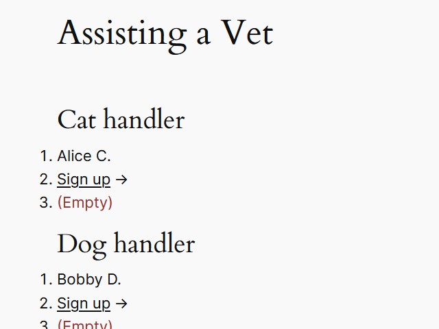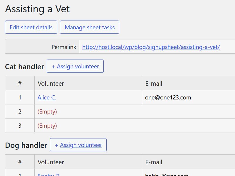 Signteer is a WordPress sign-up sheet management plugin for non-profits, churches, schools and other kinds of organizations that coordinate users and volunteers.